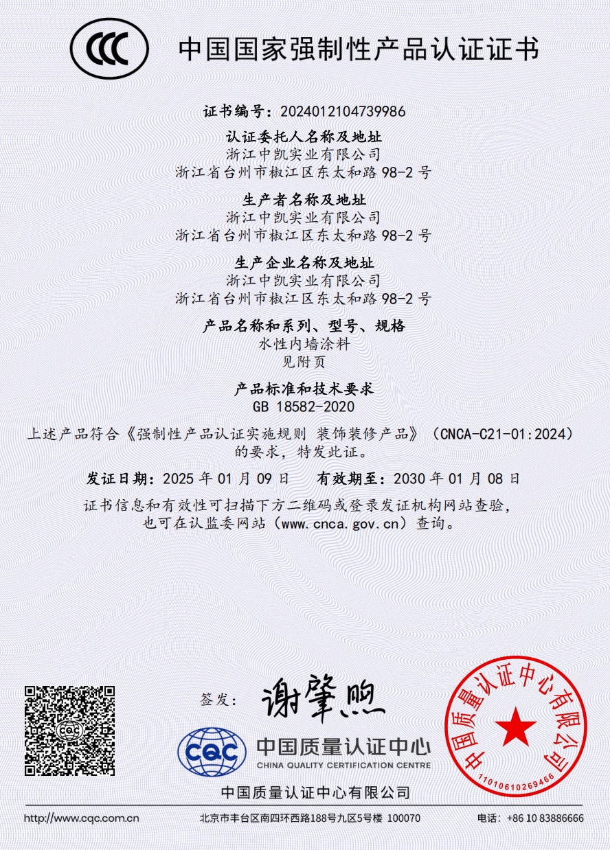 公司成立于1995年,占地面積10000㎡,建筑面積9000㎡,擁有工程師,技術(shù)員等職工120人。公司擁有精良的生產(chǎn)設(shè)備,完整的管理體系和先進(jìn)的檢測(cè)設(shè)備,經(jīng)過多年的市場(chǎng)調(diào)研和產(chǎn)品開發(fā),薈萃了許多科研精英,解決了以往涂料中存在的一些長(zhǎng)期沒有獲得解決的缺陷,成為建筑涂料領(lǐng)域的佼佼者,并成為國(guó)內(nèi)具有一定規(guī)模和信譽(yù)的涂料生產(chǎn)企業(yè)。主要產(chǎn)品“中凱”牌高、中檔內(nèi)外墻厚質(zhì)十大系列近百個(gè)品種的建筑涂料,建筑水性反射隔熱保溫涂料和建筑外墻外保溫隔熱防火材料三個(gè)體系。